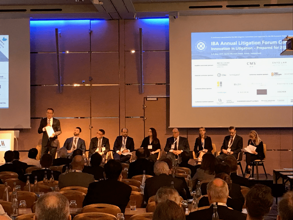 Sandrine Giroud and I co-moderated a panel discussion in Zürich entitled “Artificial Intelligence — How much of you will it replace? How much will it enhance?” The discussion was sponsored by the International Bar Association Litigation Committee.