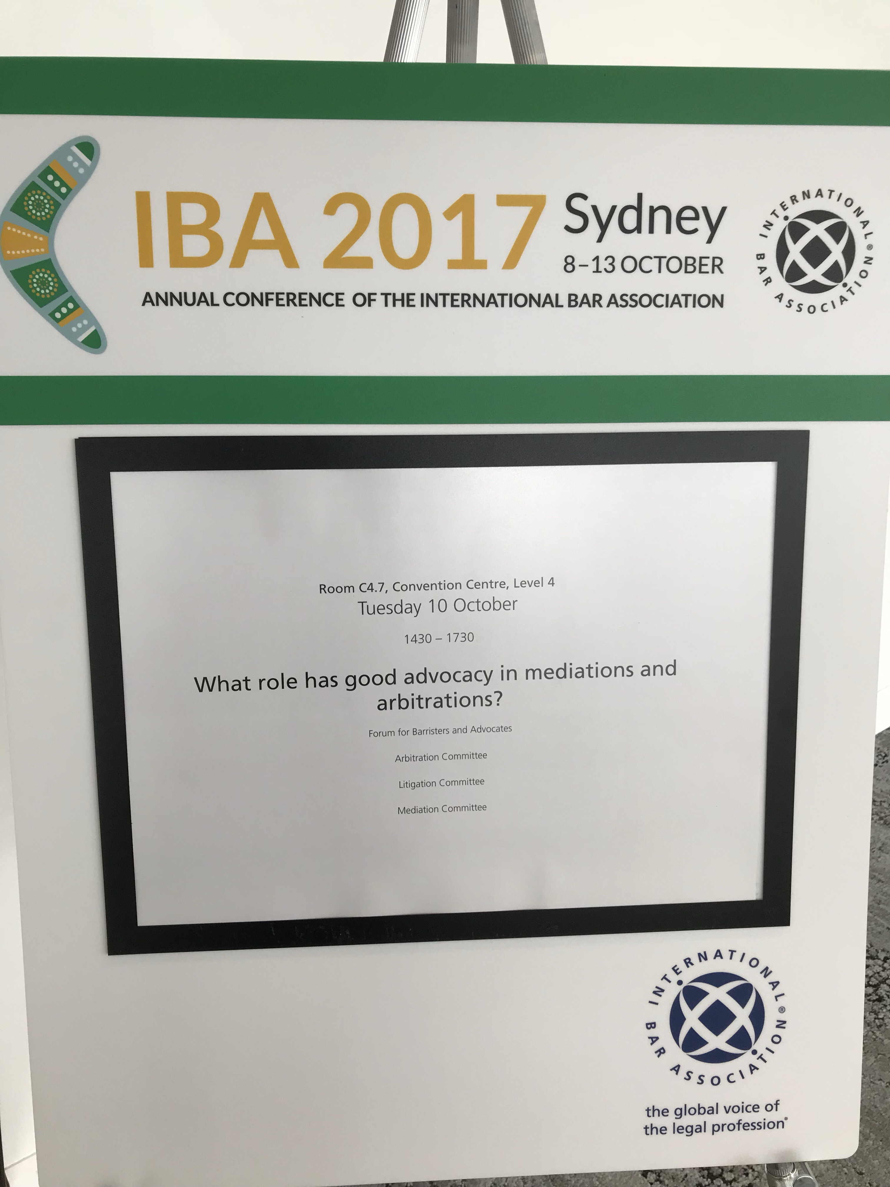 Karen Gough, Douglas Jones, Sir Bernard Eder, Paul McGarry, and I (with the assistance of David Barniville SC) spoke on good advocacy in international arbitration at the International Bar Association annual meeting in Sydney, Australia.